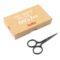 Nezbytný nástroj v každé pletařské výbavě: malé kovové nůžky (9,5 cm) v černé barvě s ostrou špičkou a kulatými držadly. Nůžky uchovávejte na svém místě v pevné kartonové krabičce (11,5 × 7 × 2 cm), ve které jsou baleny.